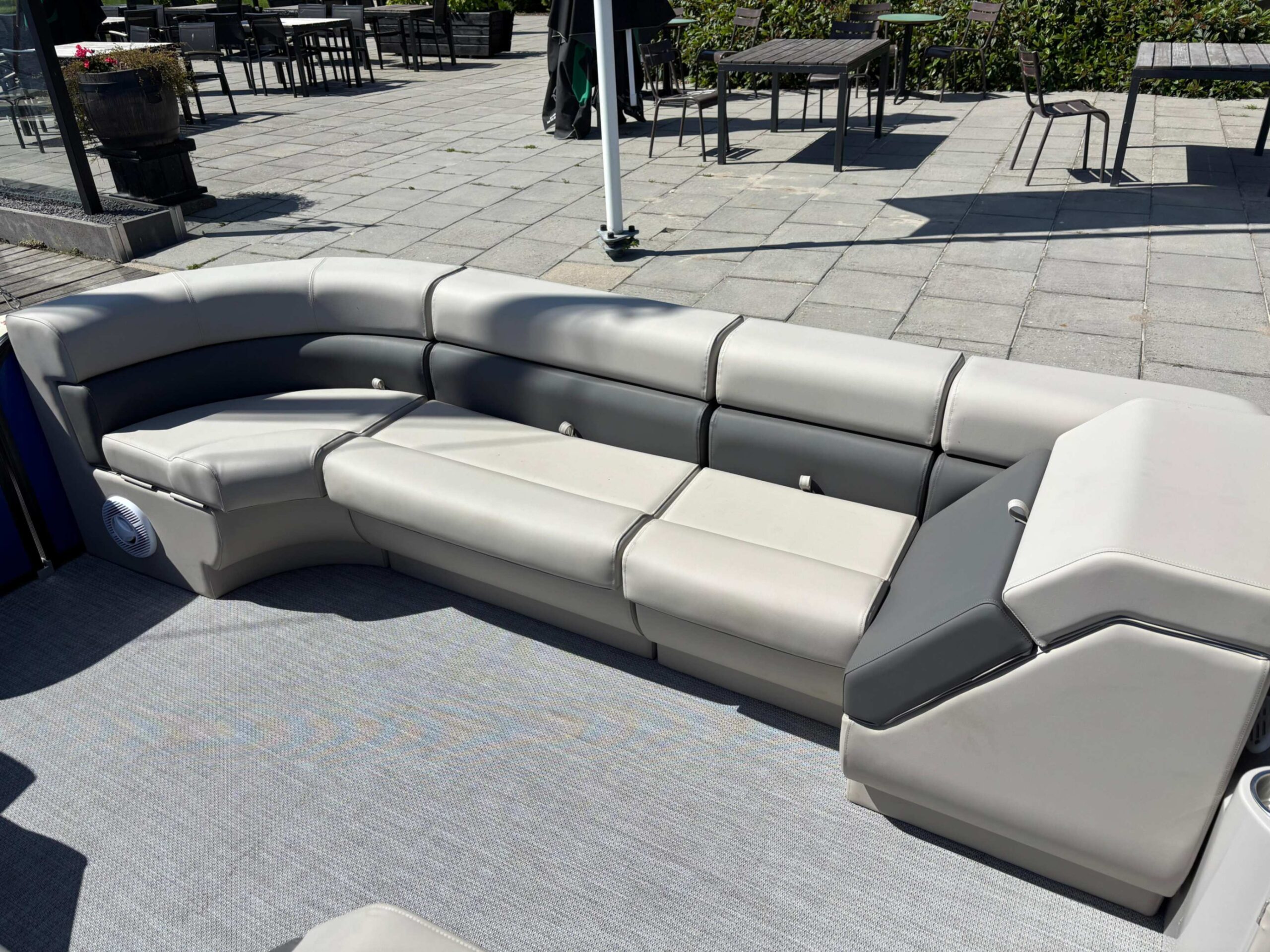 De Lounger 750 biedt plaats aan 10 tot 12 personen en is ideaal voor een ontspannen vaartocht met een groter gezelschap. Dankzij het stabiele catamaran ontwerp en de eenvoudige besturing is deze loungeboot voor iedereen toegankelijk.
